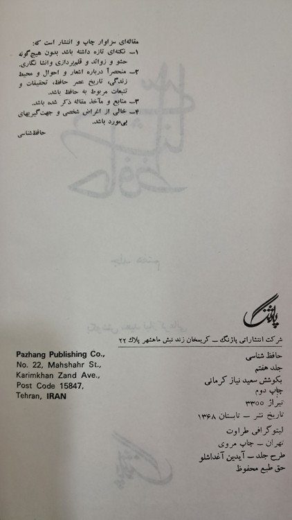 حافظ شناسی (بکوشش سعید نیاز کرمانی - جلد هفتم)